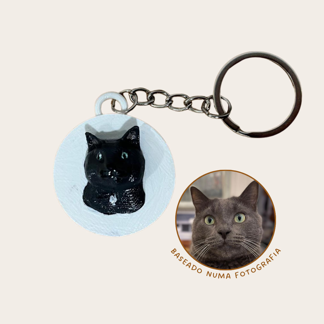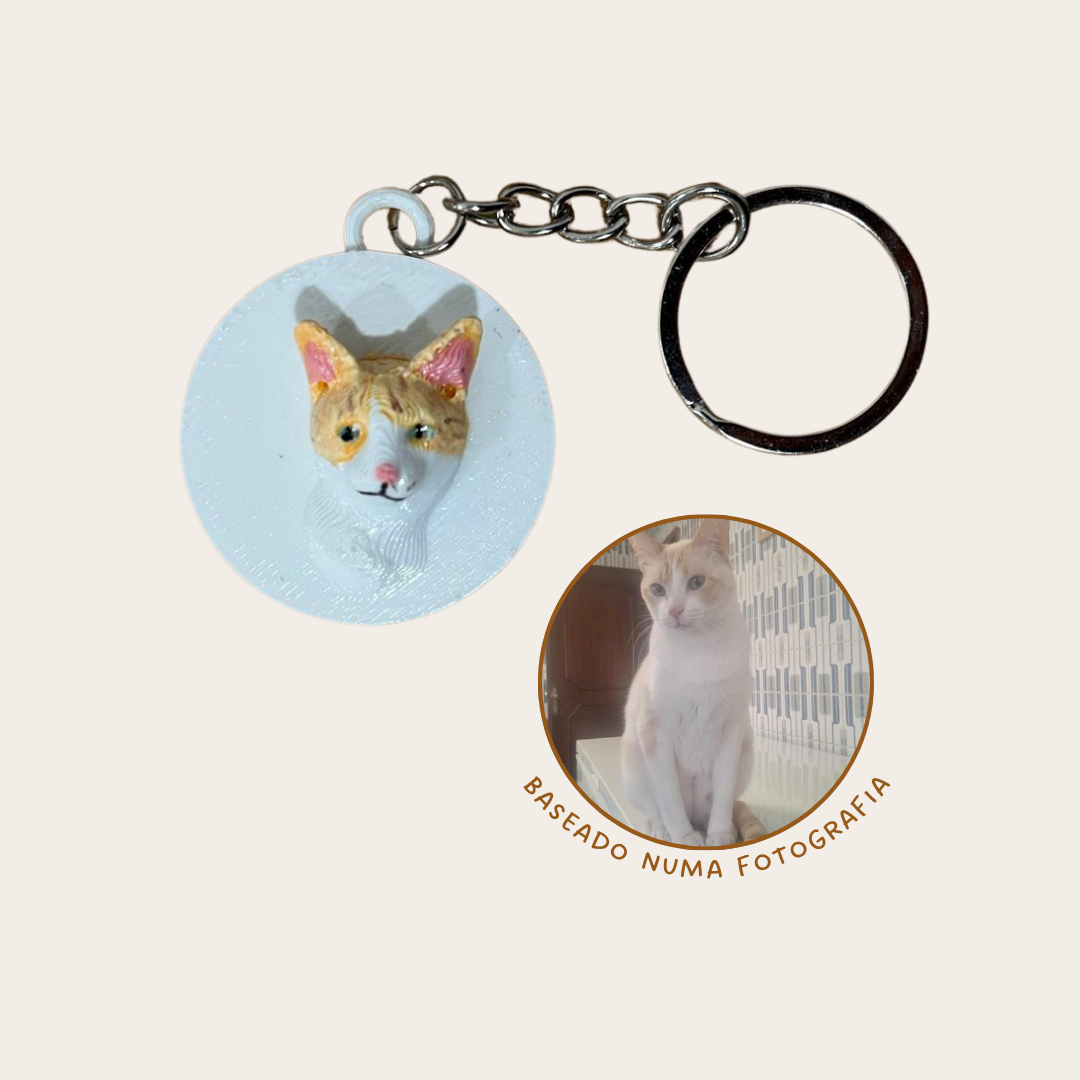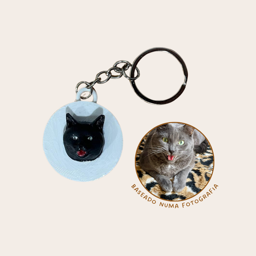 Leva o teu melhor amigo contigo para todo o lado com um porta-chaves personalizado, criado a partir de uma fotografia real do teu gato. Cada peça é impressa em 3D em PLA e pintada à mão, tornando cada porta-chaves único e especial.